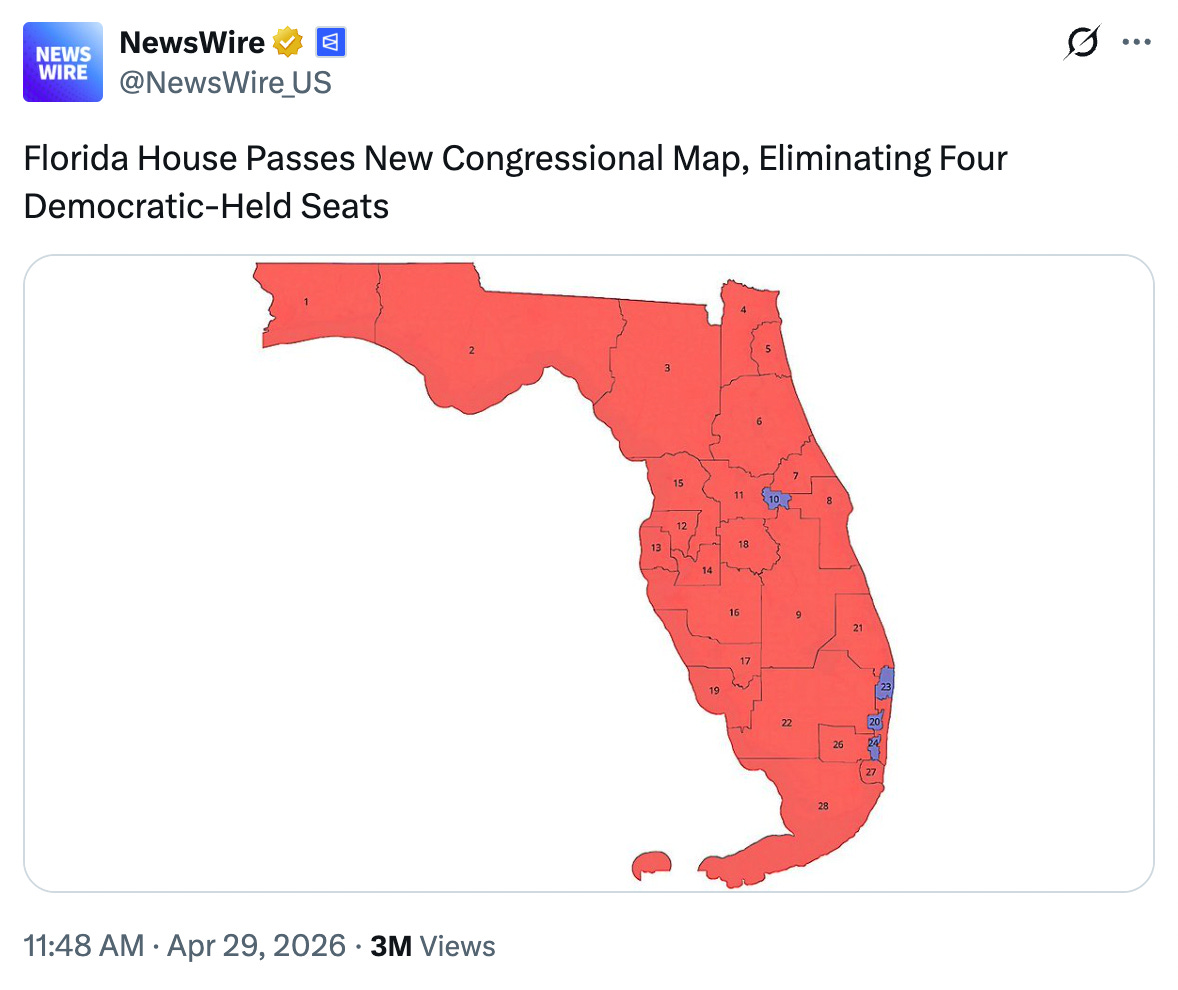 This comes two days after Ron DeSantis redrew Florida’s map to look like this: